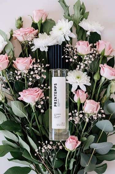 Une bouffée fraîche de tiges coupées et magnolias mêlée à la douceur des roses. Un bouquet vivant, vert et coloré.